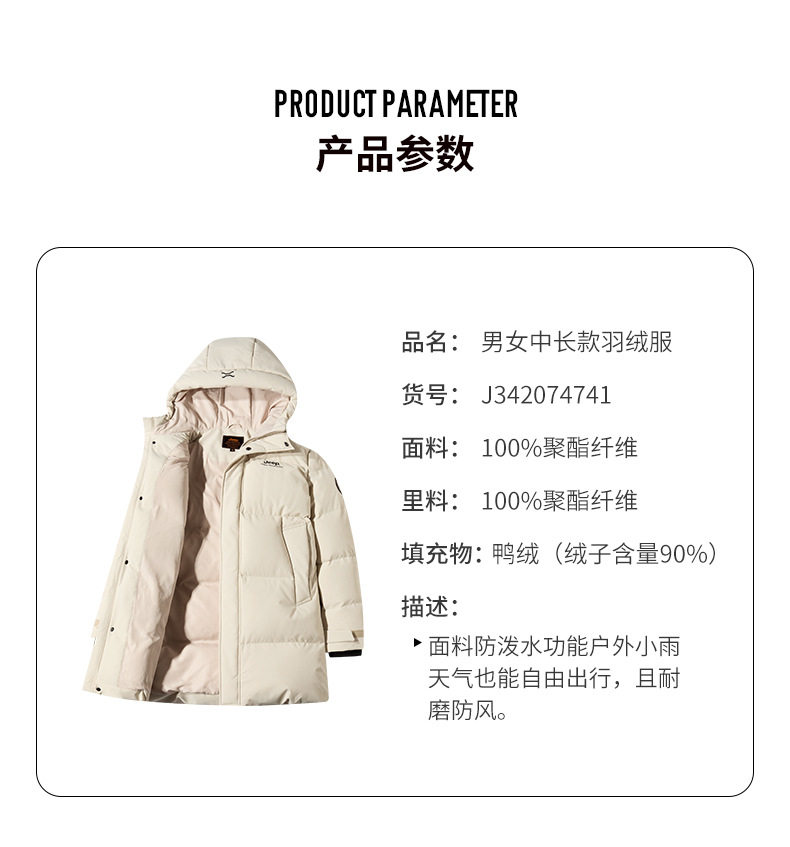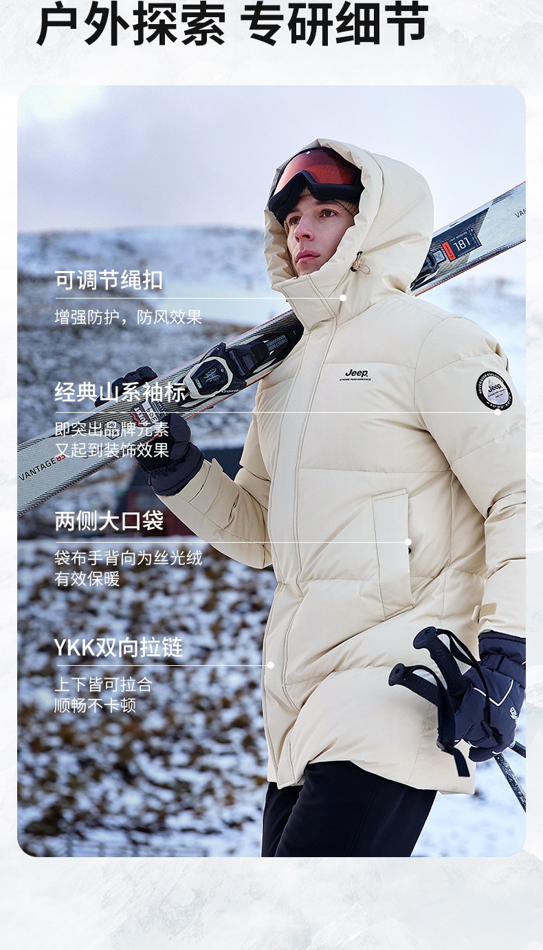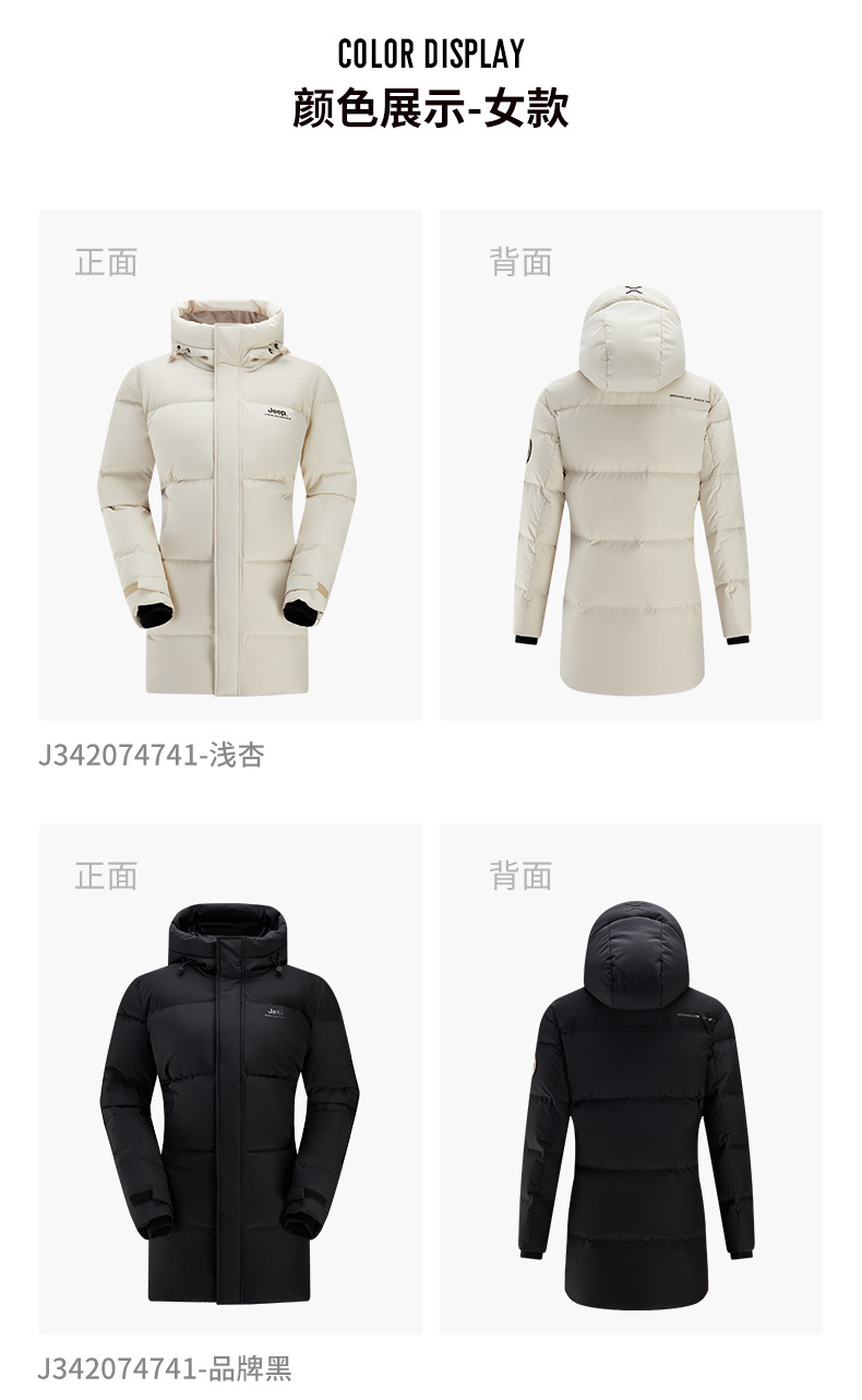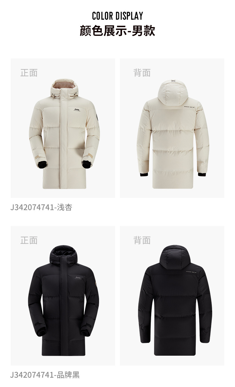 JEEP 秋冬季新款男女情侣中长款羽绒服防水保暖舒适亲肤柔软 J342074741