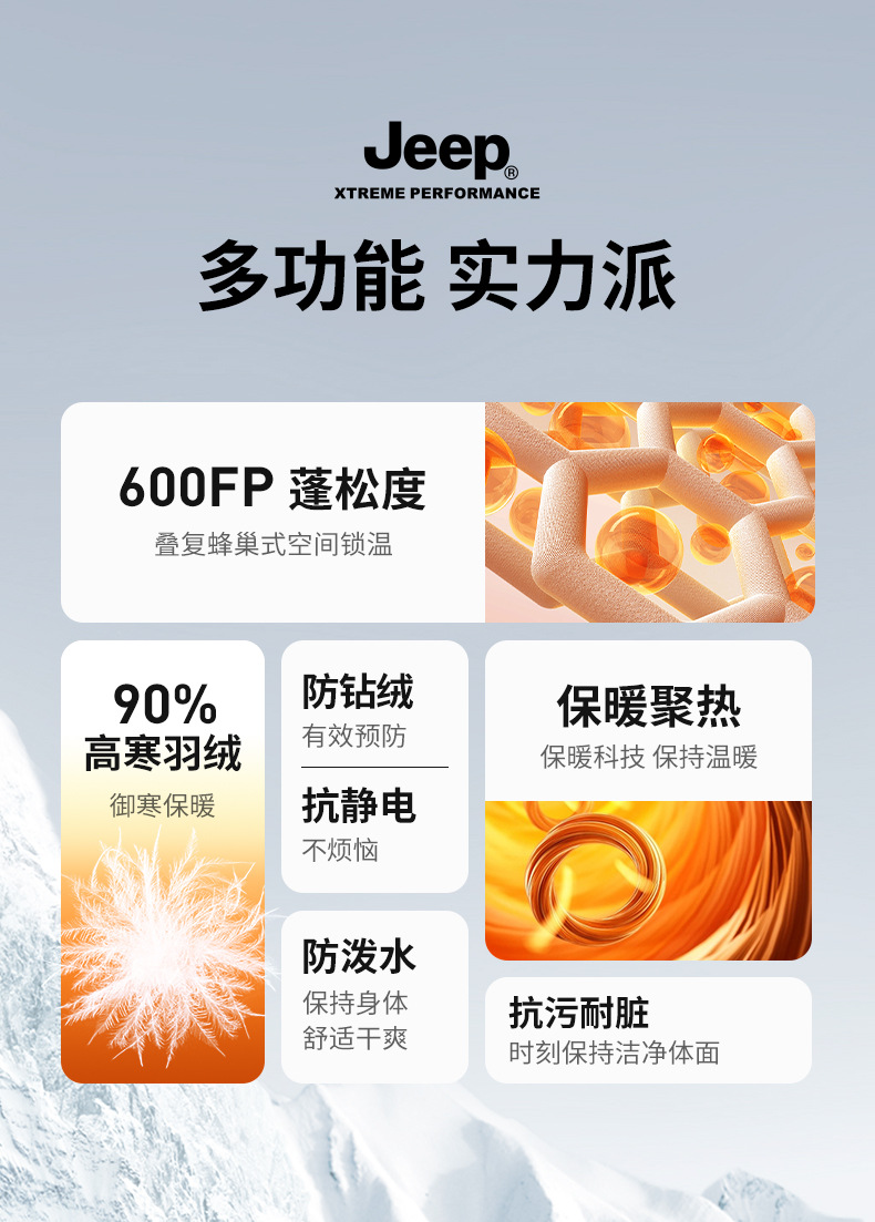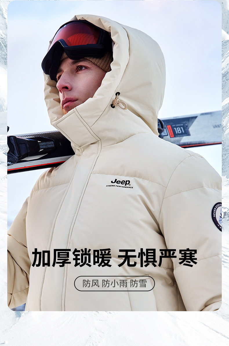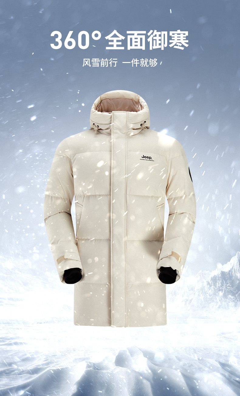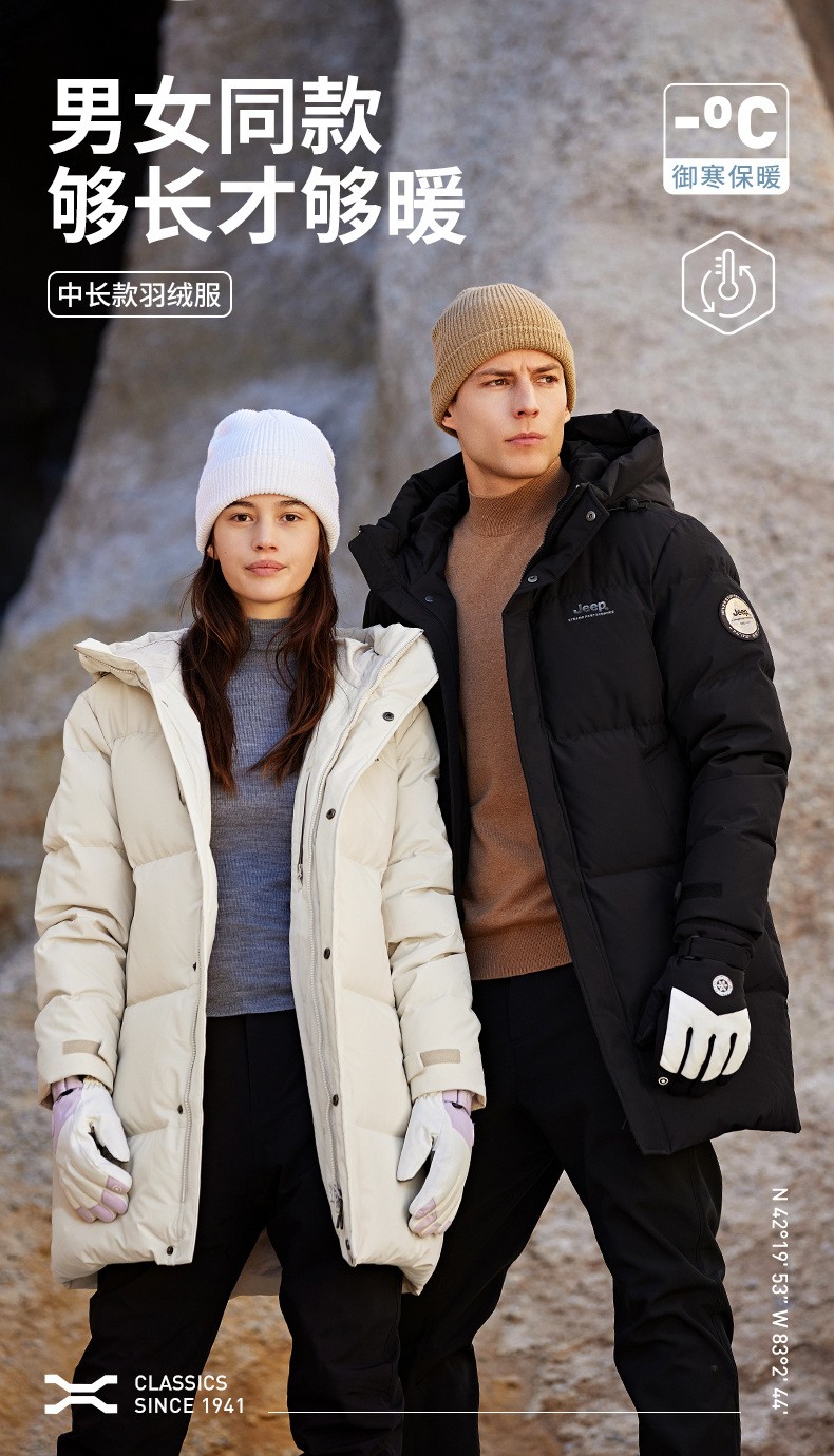 JEEP 秋冬季新款男女情侣中长款羽绒服防水保暖舒适亲肤柔软 J342074741