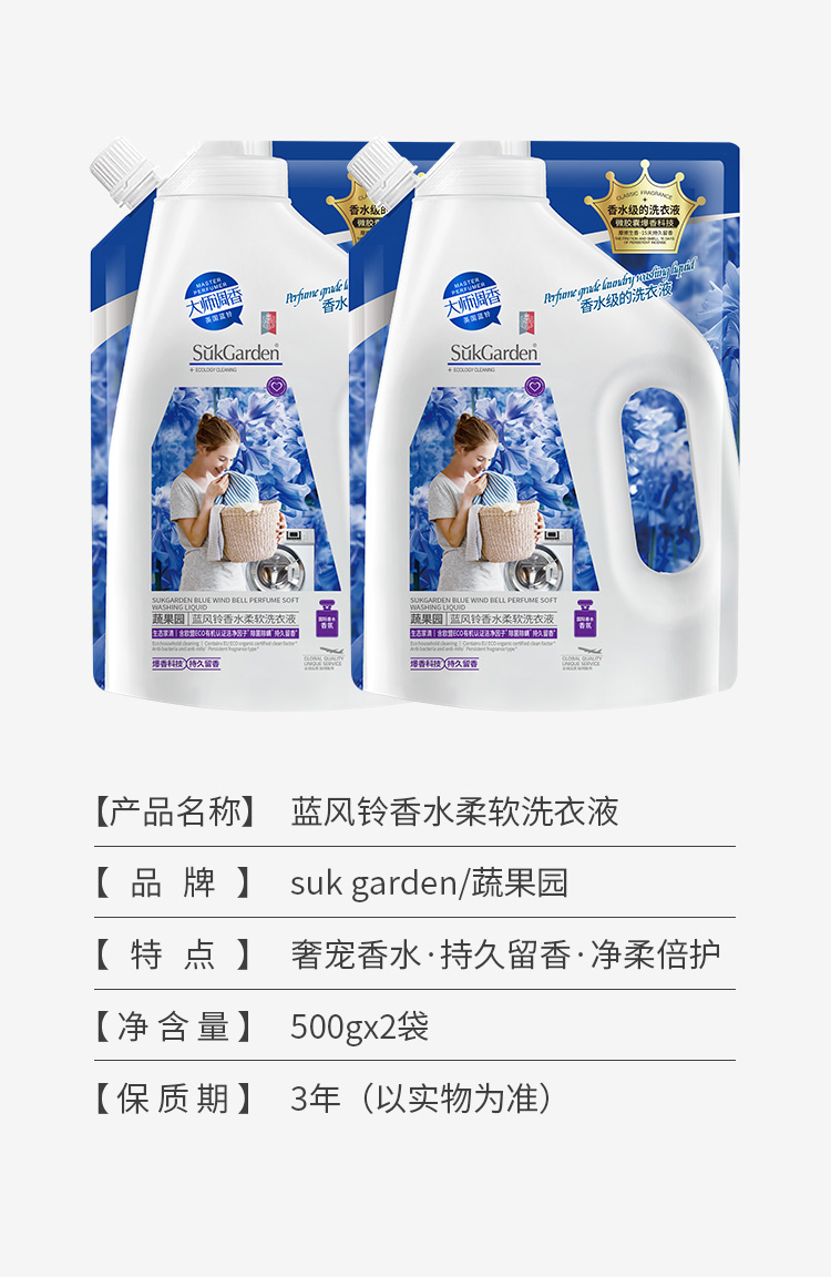蔬果园 蓝风铃香水洗衣液500g*2袋