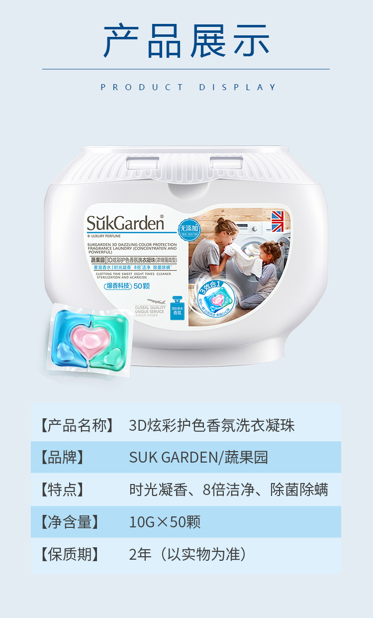 蔬果园3D洗衣凝珠(浓缩强效型)-10g*50颗*1盒