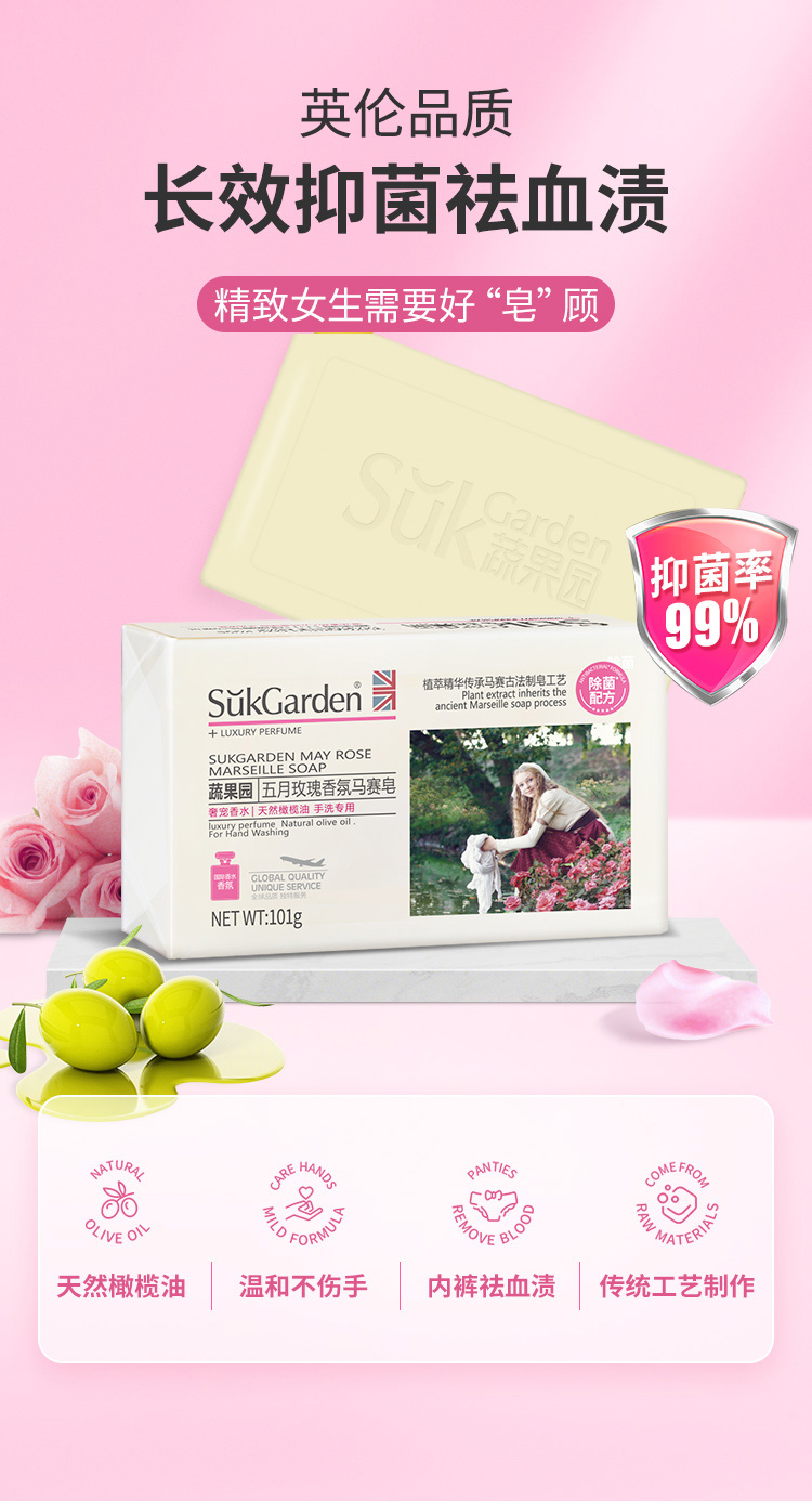 蔬果园五月玫瑰香氛马赛皂组合101g/块*4