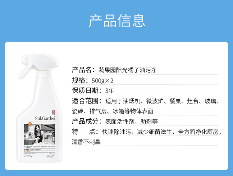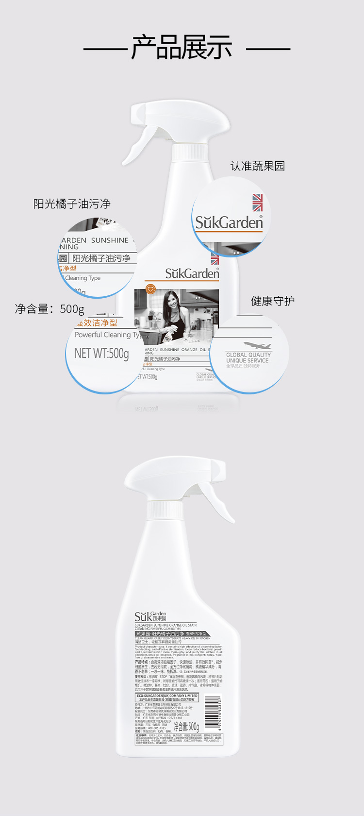 【油污净组合】SukGarden蔬果园阳光橘子油污净(促销装)500g*3瓶