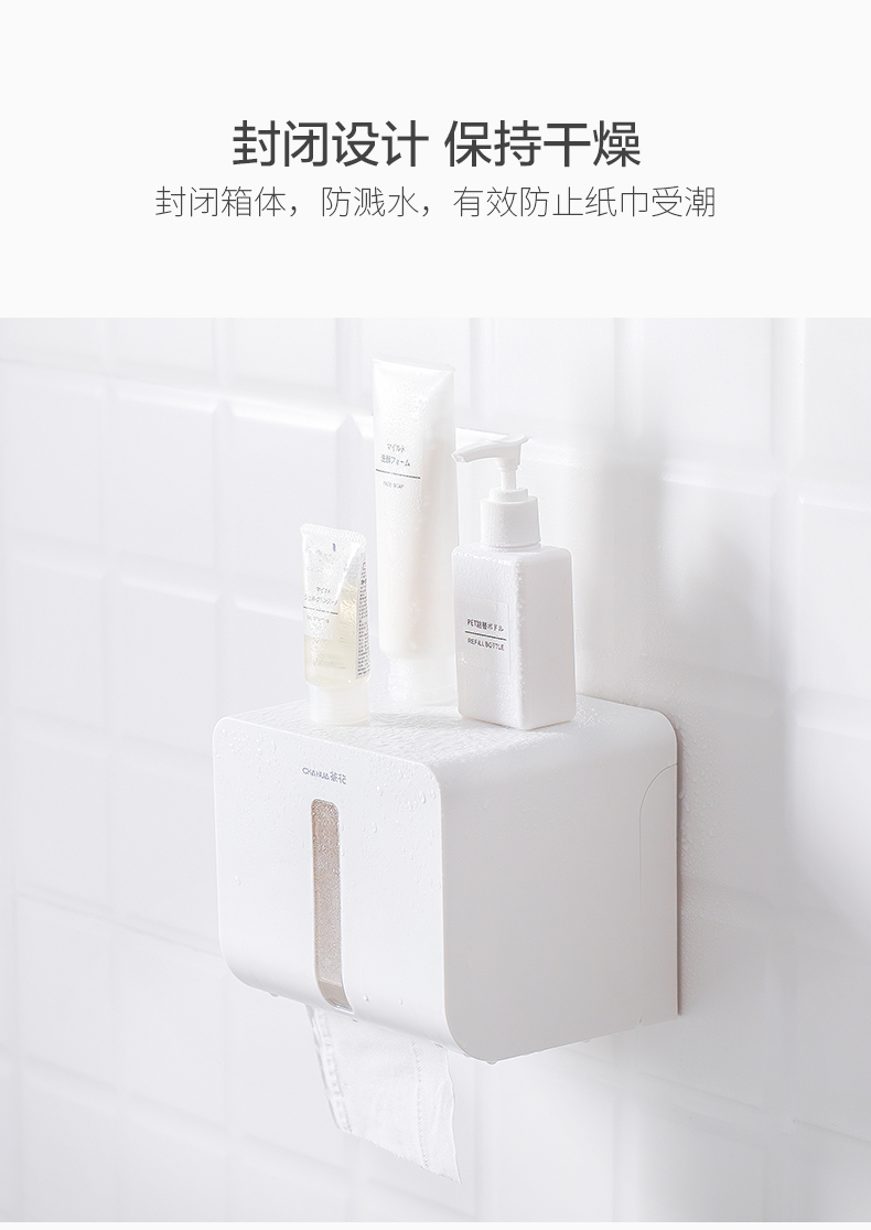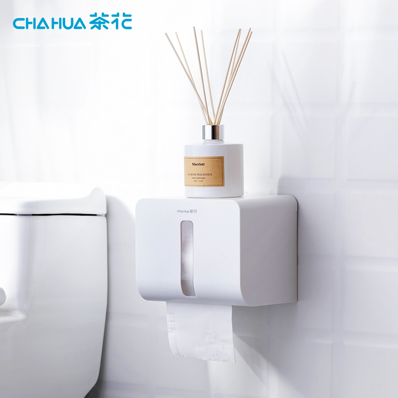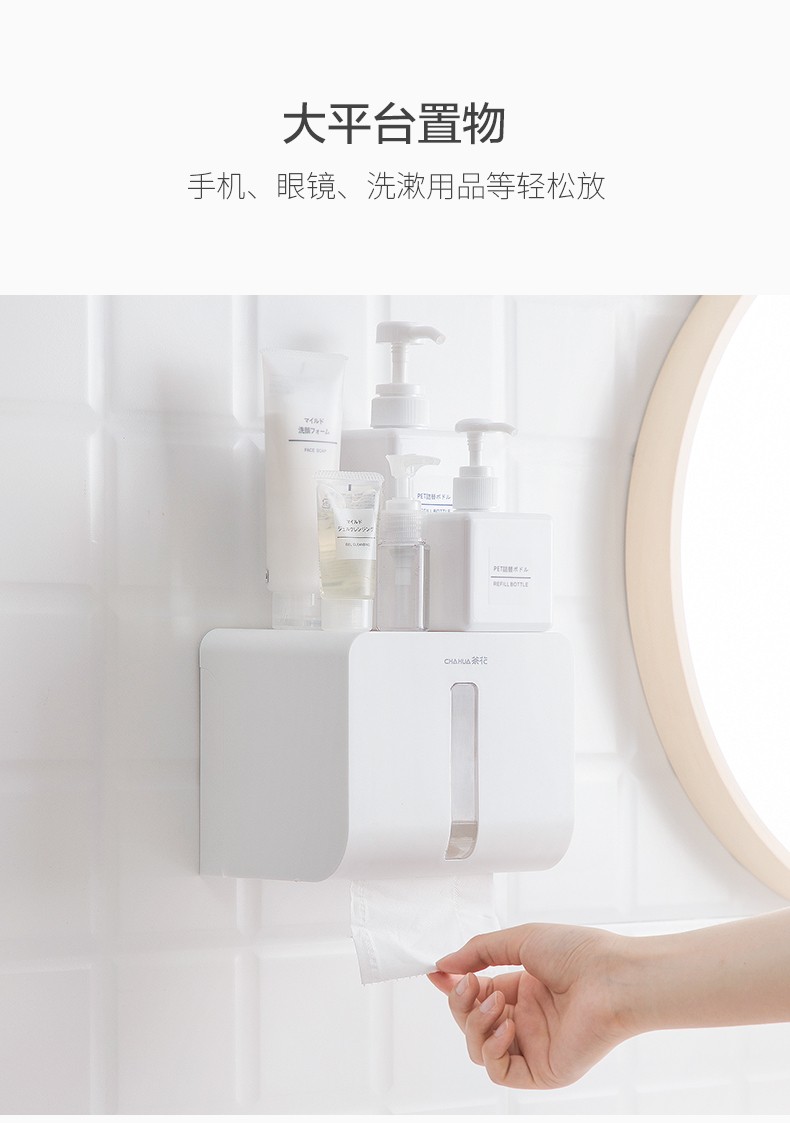 茶花卡乐免打孔吸壁纸巾收纳架 255004