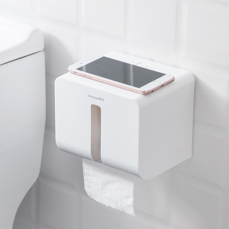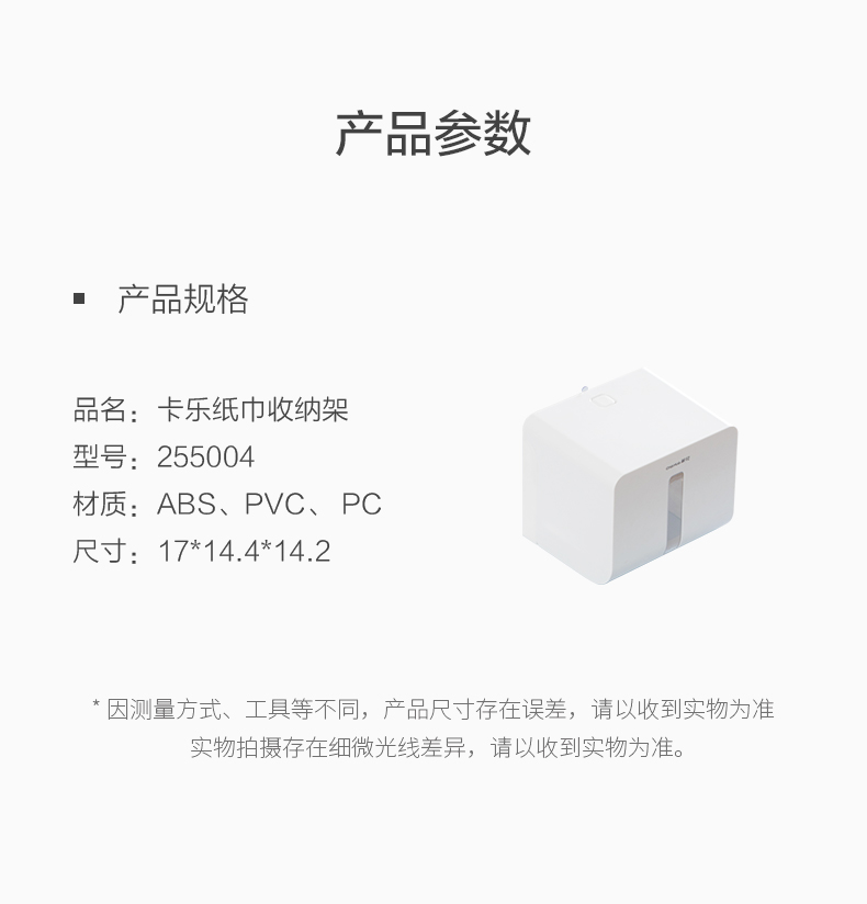 茶花卡乐免打孔吸壁纸巾收纳架 255004