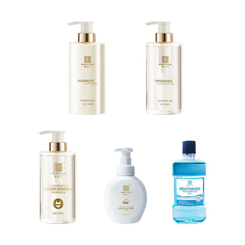 规格 :香氛去屑控油洗发水500ml+香氛美肌润肤沐浴露500ml+漱口水500ml+泡沫抑菌洗手液300ml+香氛内衣专用洗衣液500ml