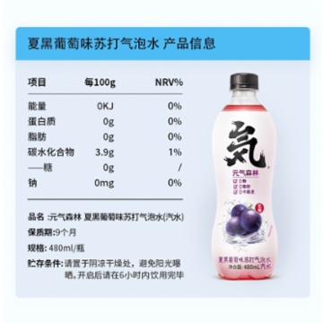 元气森林 夏黑葡萄味饮料无糖无热量苏打气泡水480ml*15瓶装 整箱