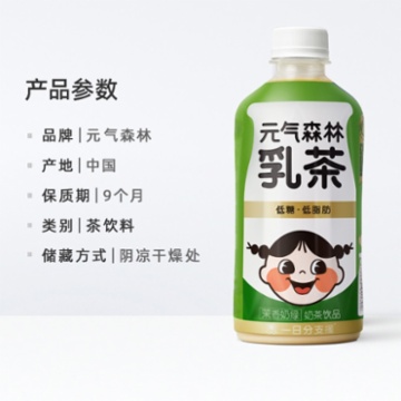 元气森林 茉香奶绿低糖低脂肪乳茶奶茶饮料 450ml*12瓶 整箱
