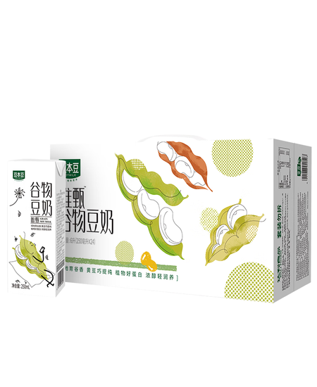 豆本豆唯甄谷物豆奶250ml*24盒2.3g植物蛋白饮料谷物营养学生儿童早餐奶