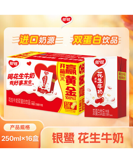 银鹭 花生牛奶口味 复合蛋白饮料 250ml*16盒 整箱