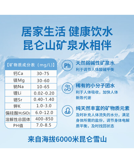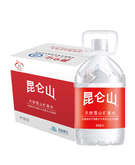 昆仑山 矿泉水 饮用天然弱碱性 5L*4瓶 整箱装 家庭品质 加多宝出品