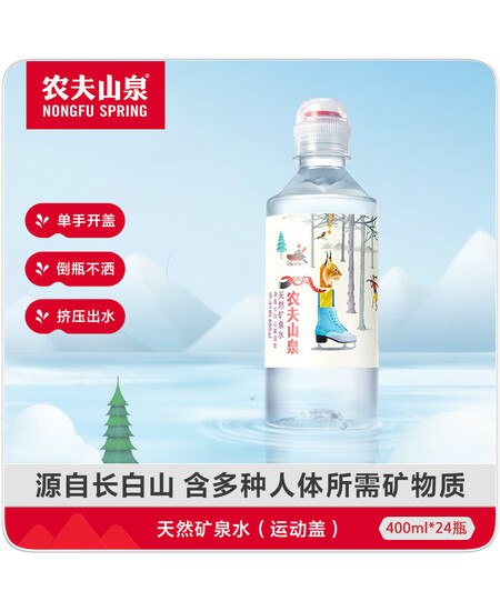 农夫山泉 长白山 饮用水 运动盖饮用天然矿泉水 400ml*24瓶 整箱装