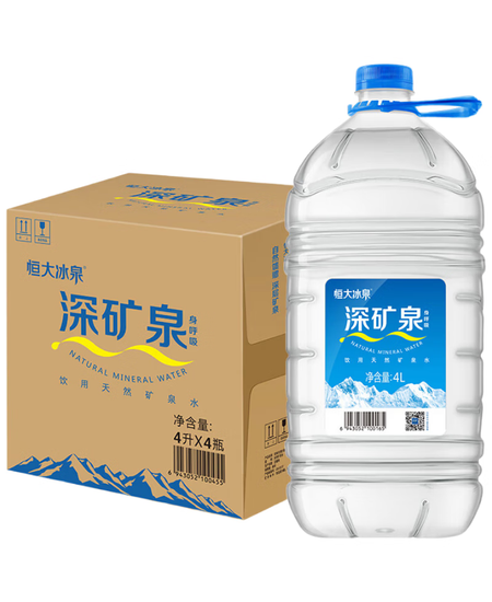 恒大冰泉 饮用天然矿泉水 泡茶露营 4L*4桶 整箱装
