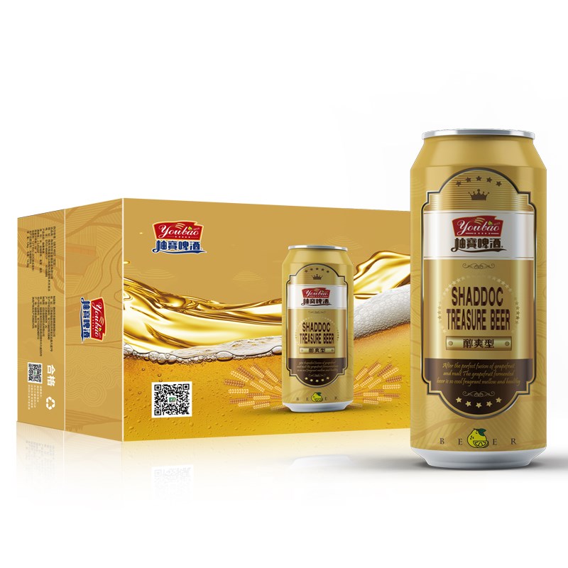 柚宝官方直营醇爽型500ml*12罐啤酒整箱金柚原浆精酿VS进口啤酒