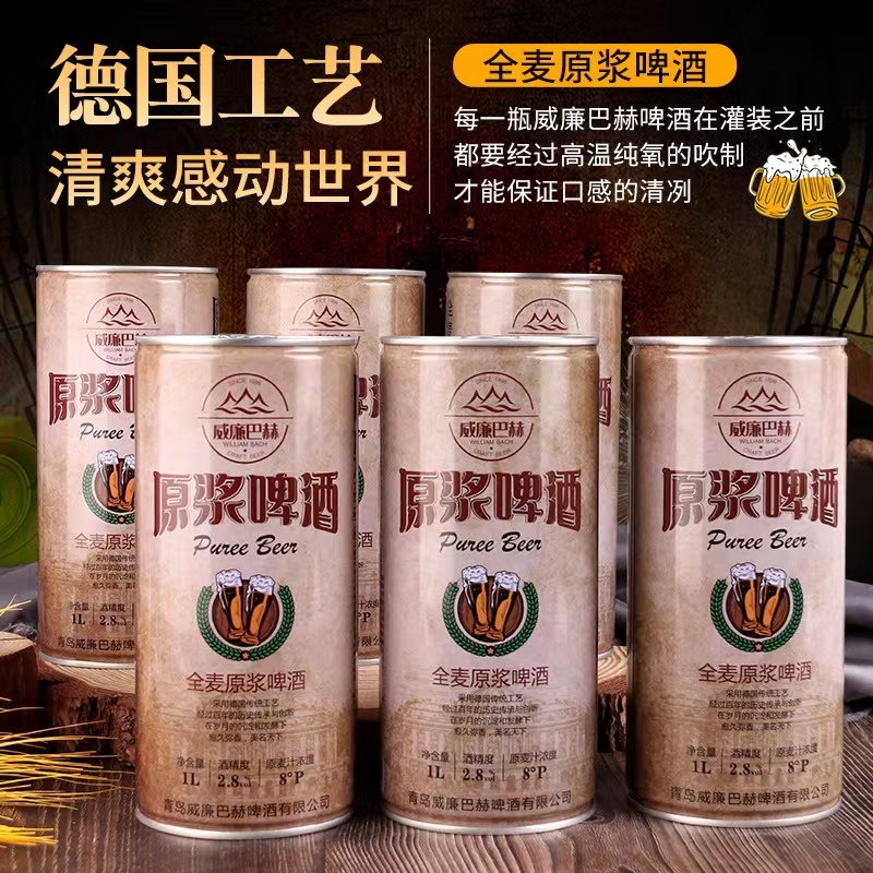 威廉巴赫 啤酒鲜啤青岛特产原浆啤酒1L*6瓶