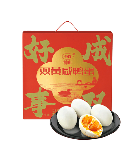 神邮 高邮双黄咸鸭蛋 熟16枚*70g中秋礼盒 即食流油咸蛋黄 企业团购