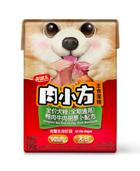 开饭乐鲜肉小方狗粮湿粮 鸭肉牛肉胡萝卜 全价全期犬主食湿粮190g×8