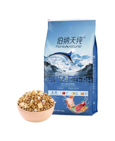 伯纳天纯生鲜系列冻干全价犬粮深海御鲜(金枪鱼+鳕鱼+三文鱼)12kg/24斤
