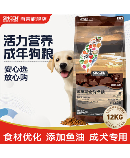 信元发育宝(SINGEN)活力营养配方全价成年犬粮12kg中大型犬哈士奇金毛大袋狗粮 ED24