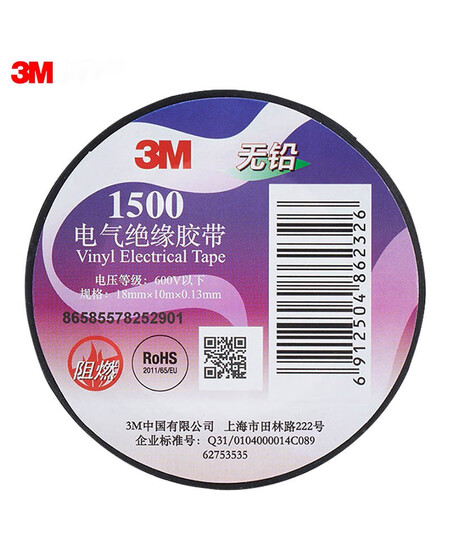 3M电工绝缘胶带汽修线束胶带家装无铅耐磨防潮 黑色 单个装 1500#
