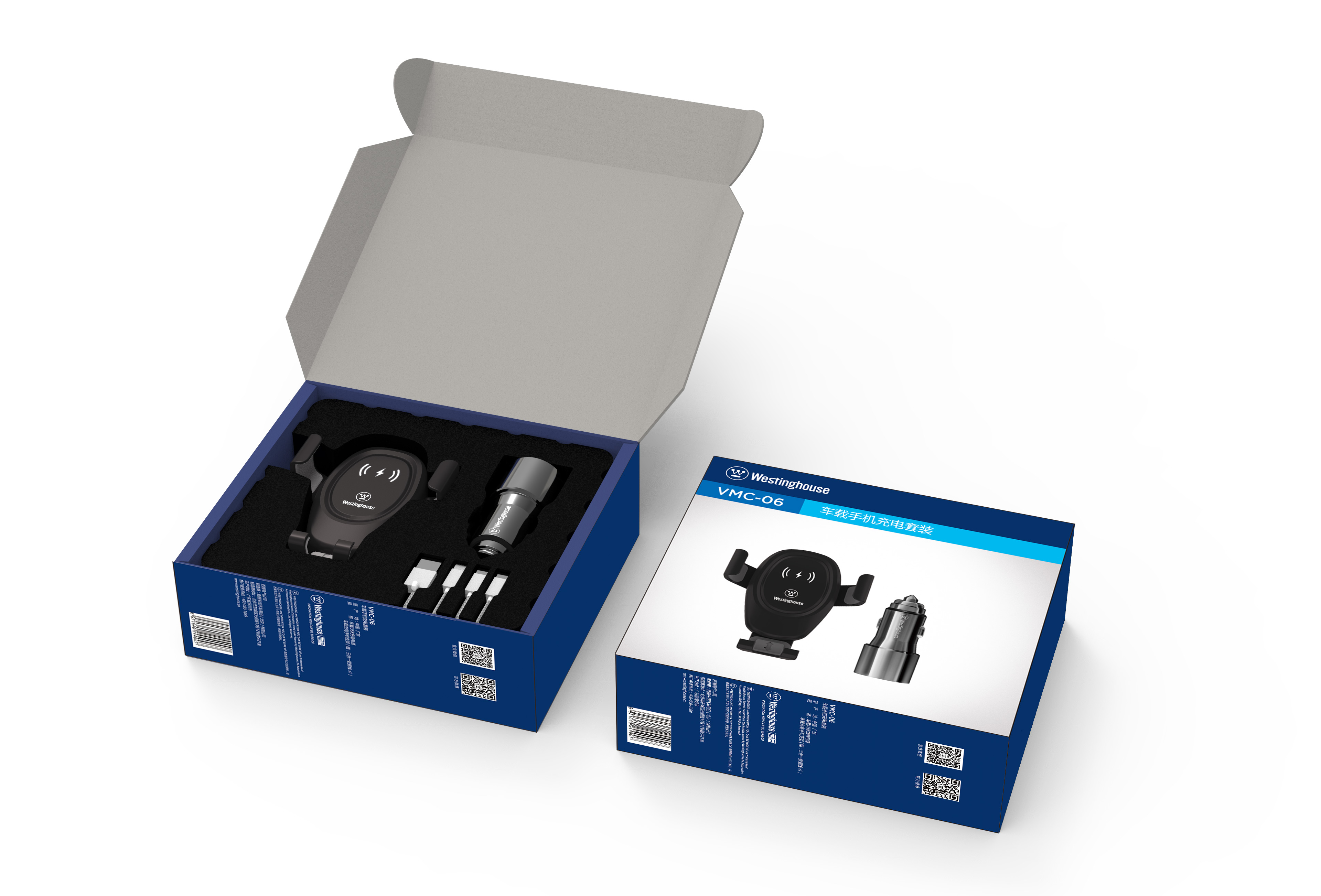 西屋车载充电器套装VMC-06 车充点烟器一拖三+手机支架+苹果数据线