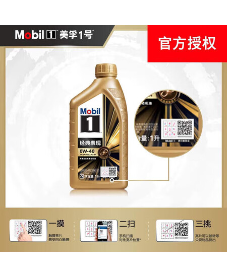 美孚(Mobil)金美孚全合成汽机油小金美经典表现 0W-40 SP级 1L*4 汽车保养