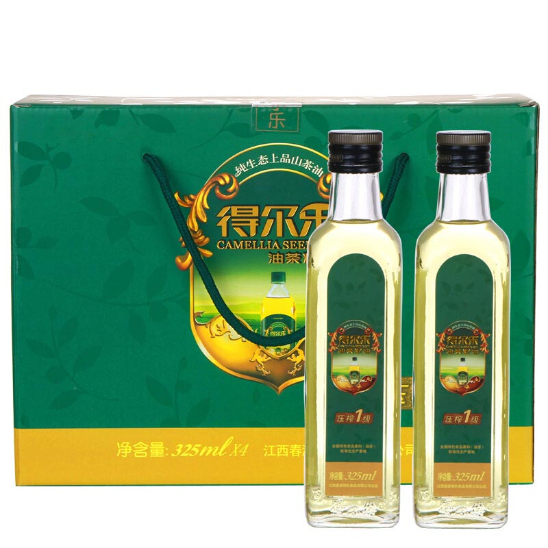 【单品】得尔乐有机茶油 压榨一级325ml*4礼盒