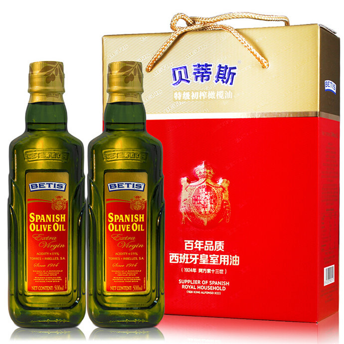 贝蒂斯(BETIS)特级初榨橄榄油礼盒 食用油 西班牙原装进口 500ml*2瓶