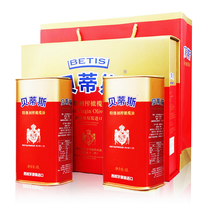贝蒂斯(BETIS)特级初榨橄榄油礼盒 食用油 西班牙原装进口 1L*2瓶
