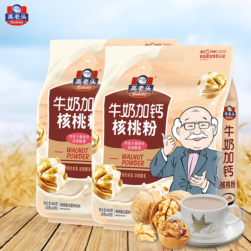高老头牛奶加钙核桃粉早餐营养五谷杂粮学生冲饮即食食品小包袋装牛奶加钙 660g*2袋 共44小包