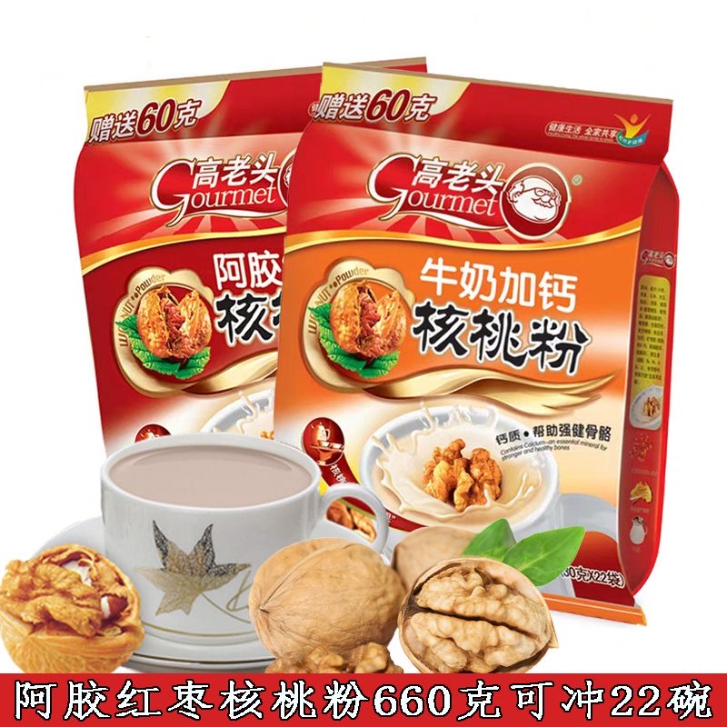 高老头阿胶红枣核桃粉牛奶即食冲饮学生代餐食品早餐营养小包袋装660g*2袋装44小包