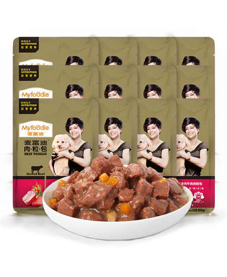 麦富迪 狗狗零食 狗罐头日常营养肉粒包牛肉味95g*12包大块肉粒拌粮解馋
