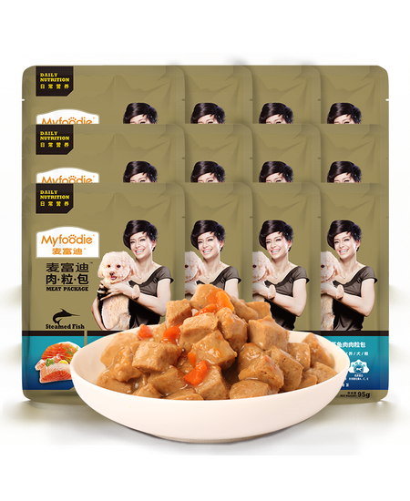 麦富迪 狗湿粮肉粒包狗罐头狗零食 清蒸鱼肉95g*12