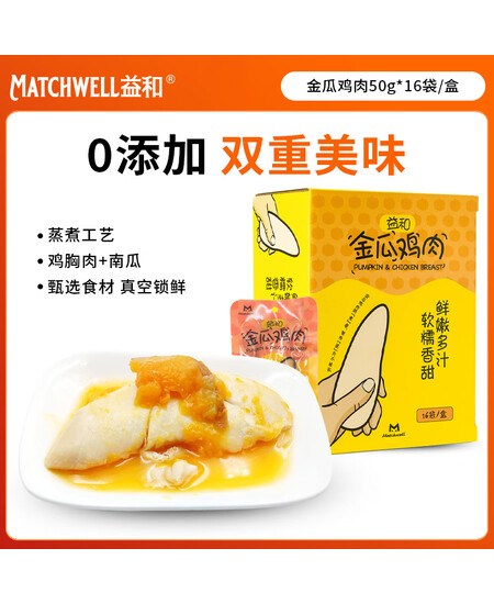 益和(MATCHWELL)宠物零食金瓜鸡肉狗狗零食猫零食宠物湿粮原汁原味50g*16 彩袋装