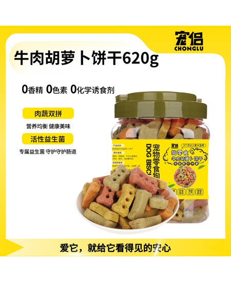 宠侣宠物牛肉胡萝卜粗粮狗饼干狗零食狗饼干成犬幼犬磨牙洁齿620g*1罐