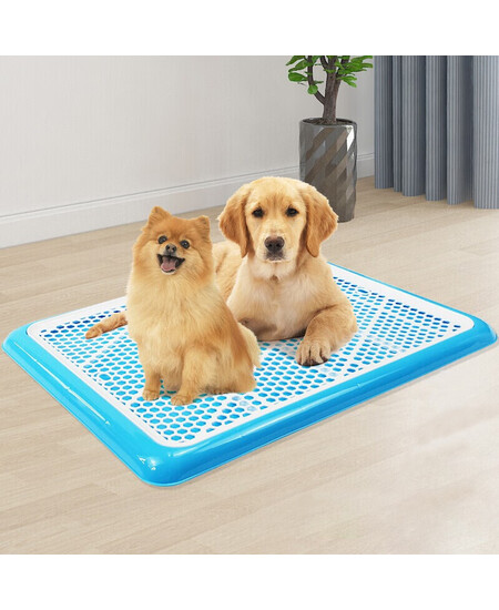 憨憨乐园 狗厕所平板大号(适合62斤内)宠物狗狗厕所中大型犬尿盆屎盆便盆蓝色带立柱方便冲洗