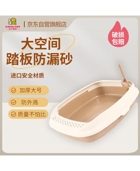 美卡标准号半封闭式猫砂盆大空间踏板敞开防外溅猫厕所 猫用品 咖啡色