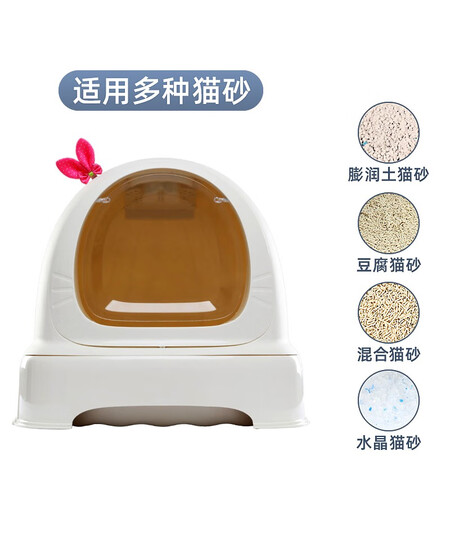 美卡机器猫全封闭猫砂盆大号防隔臭外溅猫砂盆大空间猫厕所奶白色38