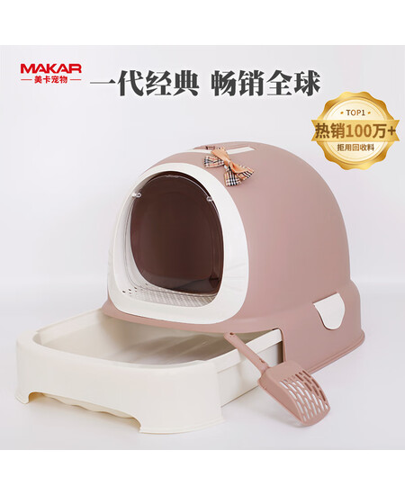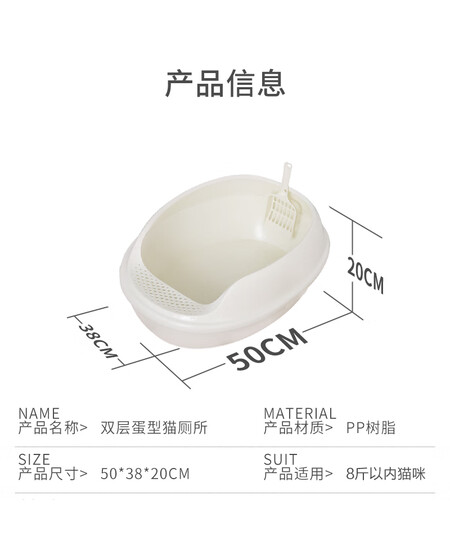美卡 通用型蛋式猫砂盆猫厕所 中号半封闭踏板防外溅猫咪用品 奶白色