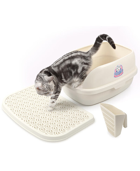 佳乐滋猫用品双层猫砂盆套装猫厕所配猫砂尿垫猫砂铲成猫半封闭象牙白