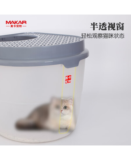 美卡顶入式全封闭猫砂盆大空间防外溅踏板式猫厕所大号银灰色