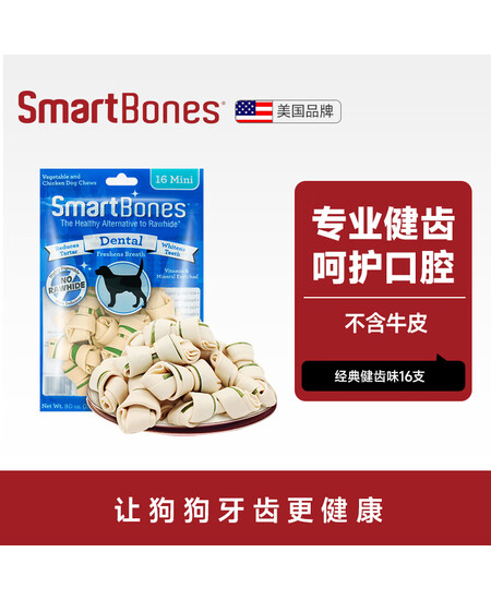 SMARTBONES宠物零食狗狗磨牙棒骨头洁齿骨洁齿棒 健齿味 迷你-16支装
