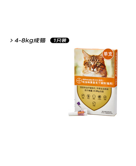 爱沃克宠物驱虫药猫体内外同驱虫成猫用4~8kg0.8ml单支装