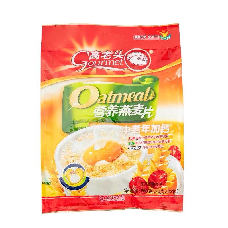 高老头中老年加钙无蔗糖燕麦片即冲即食营养早餐冲饮代餐小包袋装660g*2