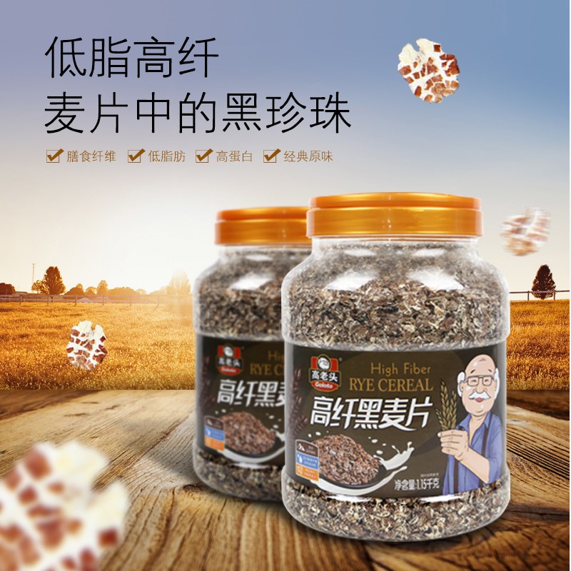 高老头高纤黑麦片1150g营养早餐冲饮代餐饱腹食品