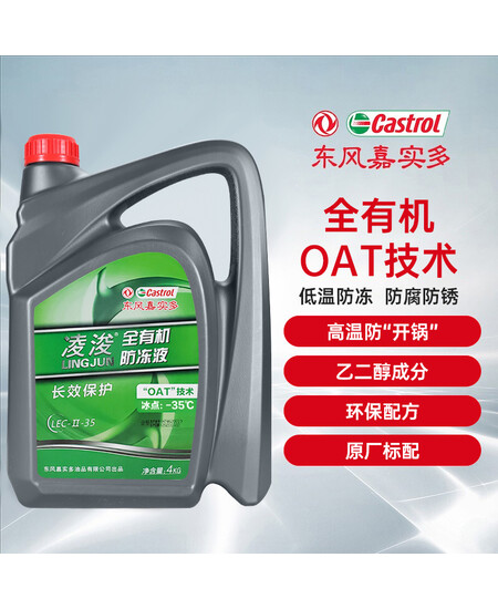 东风嘉实多 凌浚 有机型(OAT)汽车发动机乙二醇防冻液冷却液水箱宝 -35℃ 红色 4KG