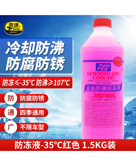普速PUSU3495汽车摩托车通用防锈防冻液水箱宝冷却液-35℃红色1.5kg