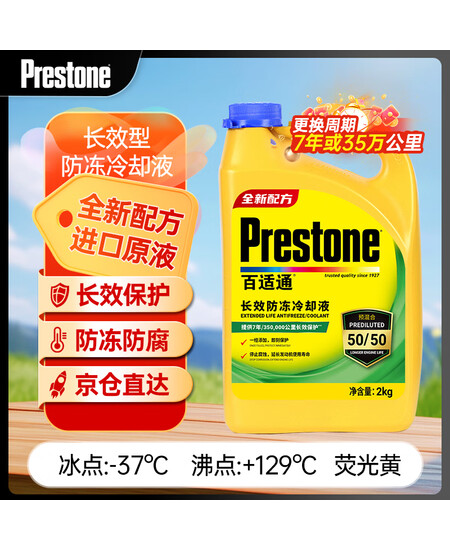 百适通(Prestone)长效有机型防冻液发动机冷却液-37度荧光黄AF2170P 2KG 7年长效
