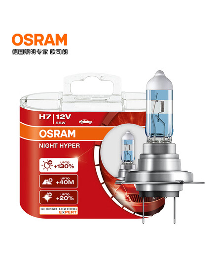 欧司朗(OSRAM)先锋夜行者H7 汽车卤素大灯远近光 12V55W【增亮130% 3900K】1对
