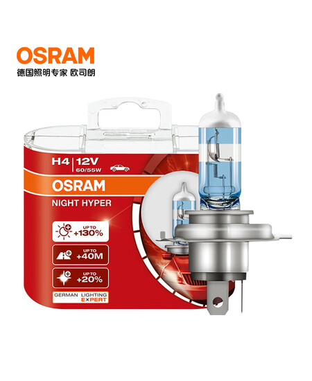 欧司朗(OSRAM)先锋夜行者H4汽车卤素灯大灯远近光【增亮130% 3900K】12V 60/55W