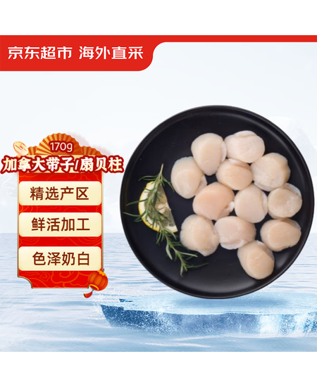 京东超市 海外直采加拿大带子扇贝肉170g 7-11粒/盘 扇贝柱 深海捕捞 海鲜